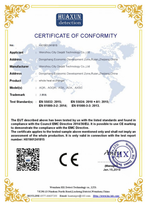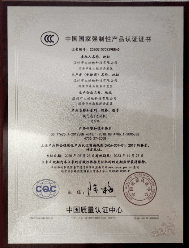 Các thiết bị thông gió và trao đổi nhiệt được cấp CCC – Chứng nhận bắt buộc của Trung Quốc, đảm bảo sản phẩm đáp ứng đầy đủ các tiêu chuẩn kỹ thuật và an toàn khi sản xuất và lưu hành.